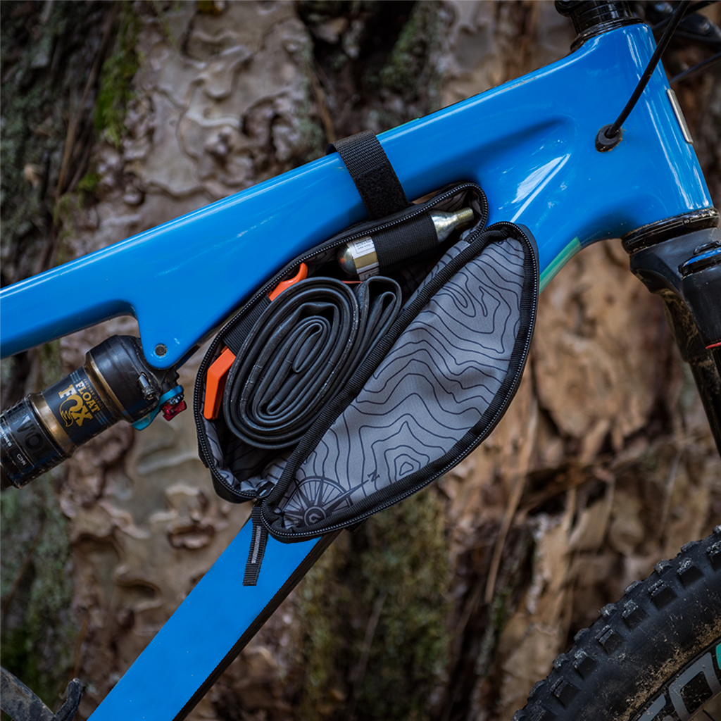 Ein praktischer, steifer Beutel der in den ungenutzten Raum hinter dem Steuerrohr passt. Optimal um CO2 Kartuschen und Werkzeuge zu verstauen.