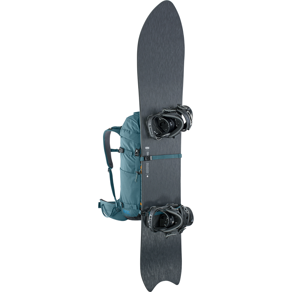 Der Tourenrucksack aus robustem Gewebe für mehrtägige Ski- und Snowboard-Touren trotzt Nässe und scharfen Kanten. Im Ernstfall lässt sich das separate Fach für Lawinenausrüstung mit Notfallplan einhändig öffnen, und Ausrüstung im Hauptfach ist durch den seitlichen Zugriff immer schnell zu erreichen.