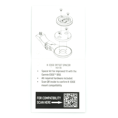 Offset Spacer für zusätzlichen Abstand um den Garmin EDGE 1050 zu montieren. Unbedingt Kompatabilität prüfen auf K-Edge.com. Dieses Produkt darf nur mit den in der Kompatibilitätstabelle aufgeführten zugelassenen Halterungen verwendet werden. Die Verwendung anderer als der von K-EDGE zugelassenen Halterungen führt zum Erlöschen der Garantie und möglicherweise zu einer Beschädigung des Geräts und/oder zu Verletzungen.