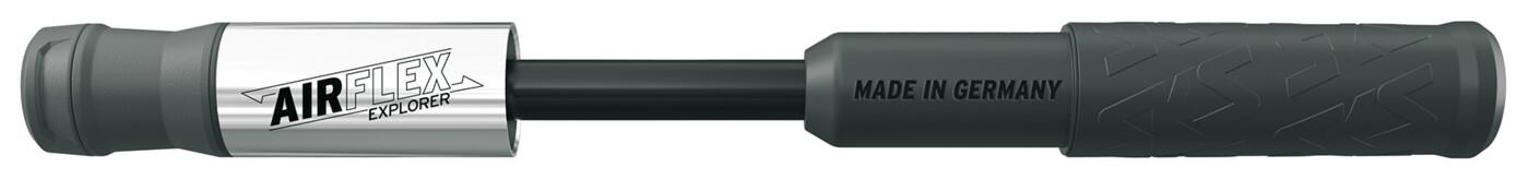 Kleine Pumpe ganz groß: Die SKS Minipumpe AIRFLEX macht das Aufpumpen von MTB Reifen jetzt noch bequemer. Das Geheimnis verbirgt sich unter der griffigen Staubkappe: Im Rohr der Pumpe befindet sich ein Schlauch, der sich herausziehen und auf den Ventilkopf für SV-Ventile luftdicht aufschrauben lässt. Der flexible Schlauch bietet ausreichend Spielraum beim Pumpen bis 5 bar. Das schont nicht nur das Ventil am Bike, sondern auch die Armmuskeln. Für einen guten Grip sorgen der Weichkomponenten-Griff sowie die vordere Griffmulde. Der Materialmix aus Aluminium und Kunststoff-Carbonkomponenten mit SKS-Prägung machen die leichtgewichtigen Minipumpen zum Must-Have für designbewusste Biker.