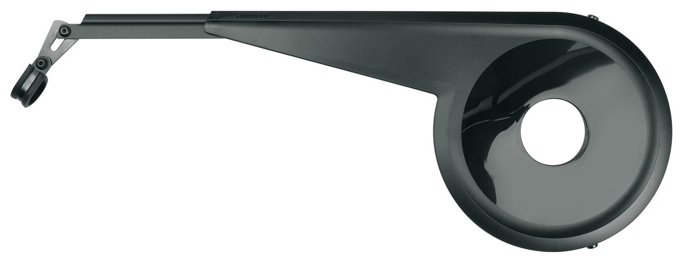 Rundum sicher geschützt. Einen perfekten Schutz bietet der Kettenschutz CHAINBOW aus schlagfestem, schwarzem Kunststoff und Aluminium. Die E-Bike Variante ist geeignet für Bosch-Motoren der 3. Generation (Active Line,