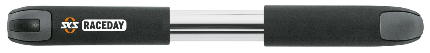 Mit Hochdruck ins Rennen: Die SKS Fahrradpumpe RACEDAY wurde konsequent für den Straßenradsport entwickelt und pumpt bis zu 10 bar. Der Pumpenkopf für SV-Ventile ist komplett vor Staub und Wasser geschützt. Die praktische Griff-Verriegelung sorgt dafür, dass die Pumpe optimal in der mitgelieferten Halterung steckt. Diese kann unter oder anstelle einer Flaschenhalterung montiert werden.