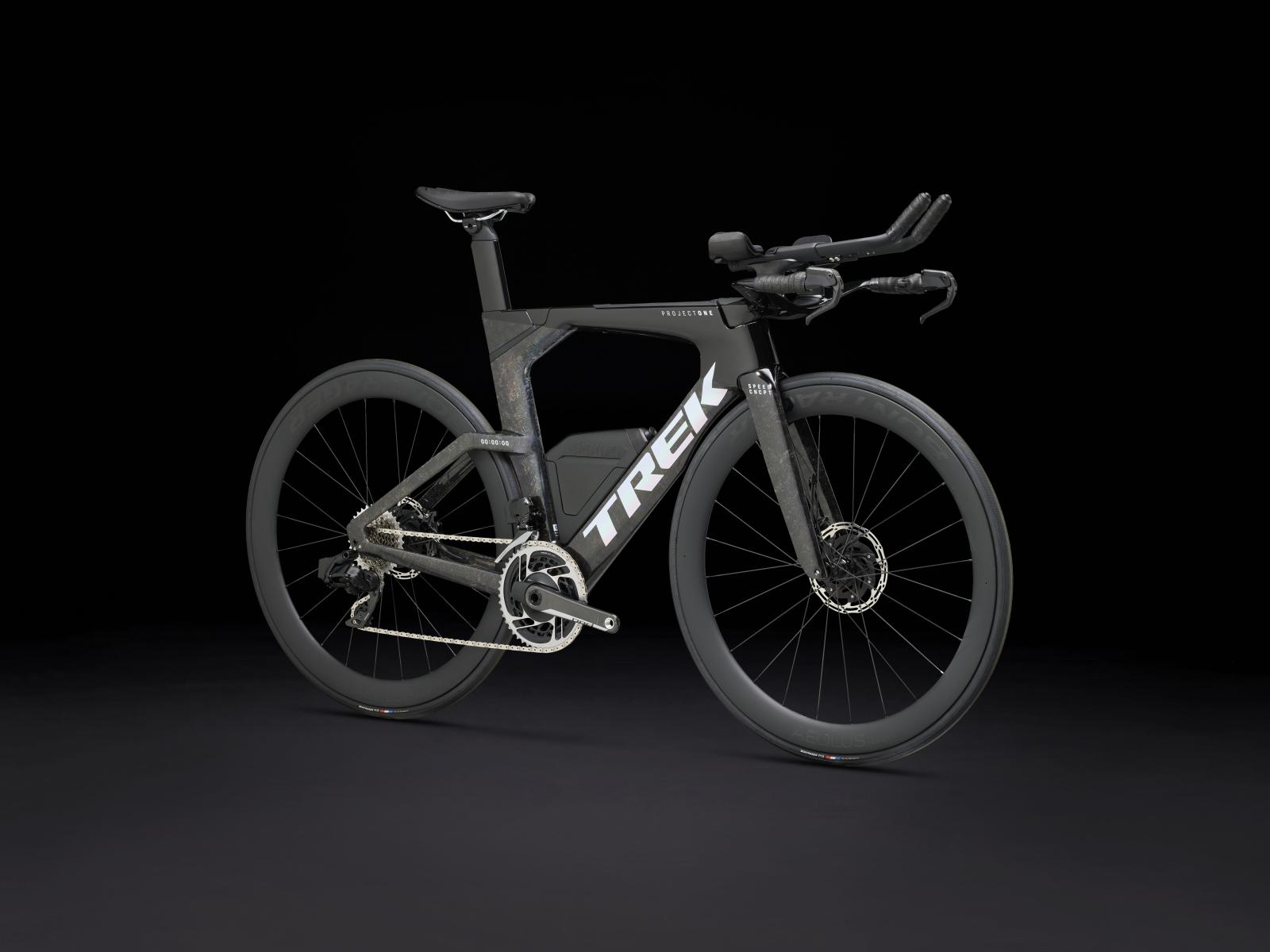 Einen ultraleichten Rahmen aus 800 Series OCLV Carbon, windschnittige Rohre mit Kammtail Virtual Foil Profil (KVF), eine Speed Concept Carbongabel mit aerodynamischem Profil, straßenglättendes IsoSpeed, integrierte Aufbewahrungslösungen für Verpflegung, Flüssigkeitsversorgung und Pannenkit, einen drahtlosen, elektronischen SRAM RED AXS 12fach-Antrieb der vorherigen Generation mit SRAM AXS Blips Schalthebeln, ein SRAM RED AXS Powermeter, eine integrierte Lenker/Vorbau-Einheit, einen triathlonspezifischen Bontrager Hilo Pro Carbonsattel, zuverlässige Scheibenbremsen und aerodynamische Bontrager Aeolus Pro 51 Laufräder aus OCLV Car