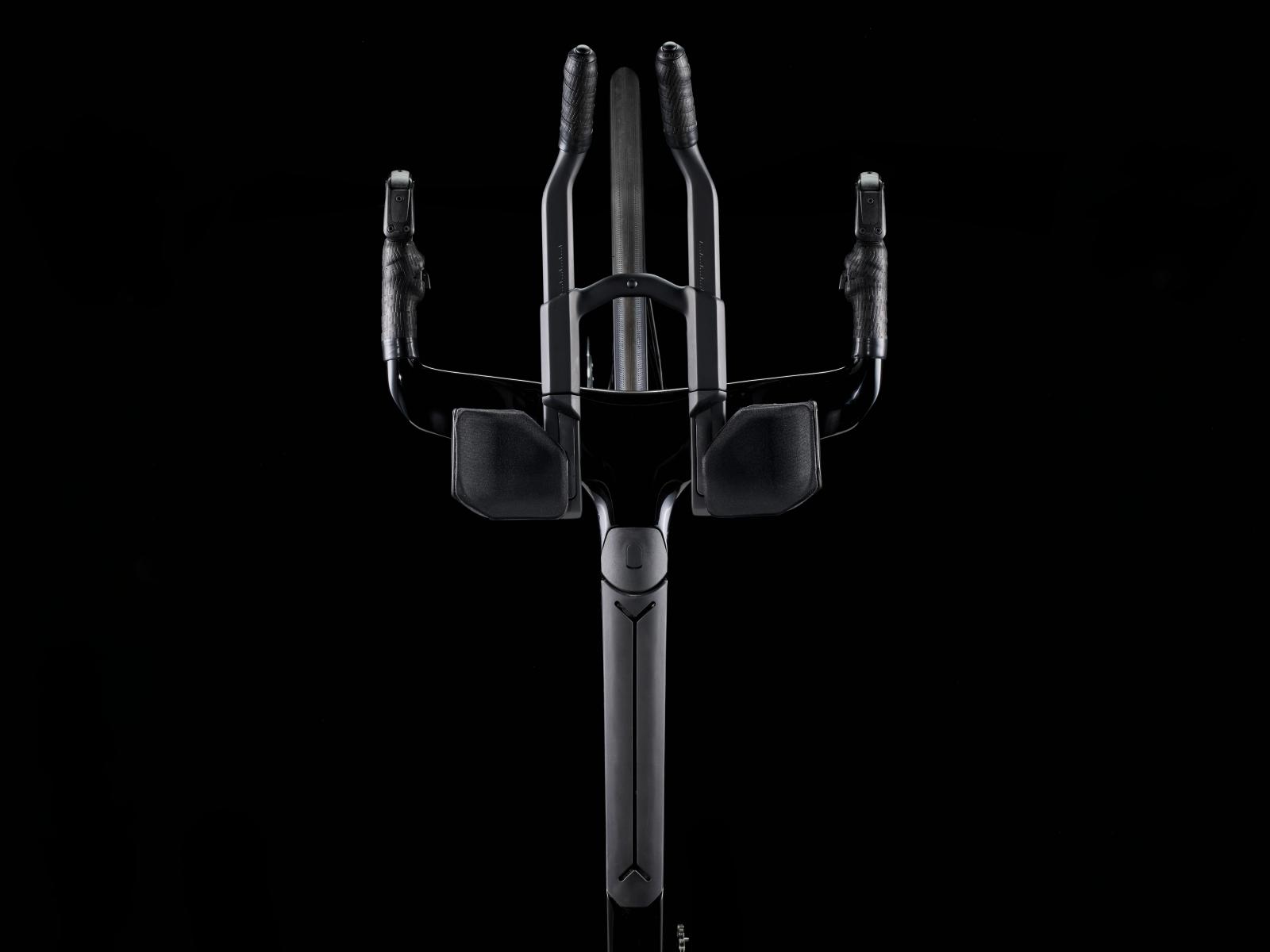 Einen ultraleichten Rahmen aus 800 Series OCLV Carbon, windschnittige Rohre mit Kammtail Virtual Foil Profil (KVF), eine Speed Concept Carbongabel mit aerodynamischem Profil, straßenglättendes IsoSpeed, integrierte Aufbewahrungslösungen für Verpflegung, Flüssigkeitsversorgung und Pannenkit, einen drahtlosen, elektronischen SRAM RED AXS 12fach-Antrieb der vorherigen Generation mit SRAM AXS Blips Schalthebeln, ein SRAM RED AXS Powermeter, eine integrierte Lenker/Vorbau-Einheit, einen triathlonspezifischen Bontrager Hilo Pro Carbonsattel, zuverlässige Scheibenbremsen und aerodynamische Bontrager Aeolus Pro 51 Laufräder aus OCLV Car