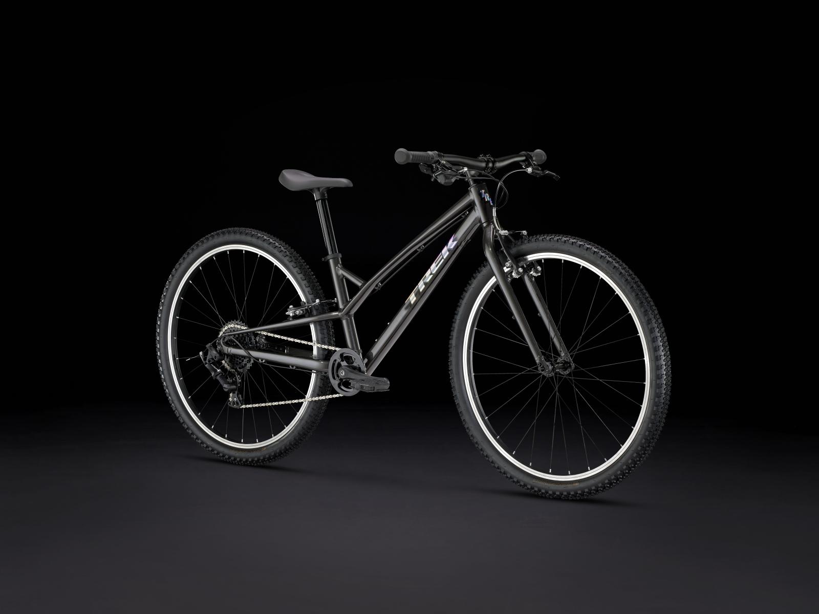 Einen Rahmen aus Alpha Silver Aluminium mit 26 Zoll großen Laufrädern und 2 Zoll breiten Reifen, die für Grip und Geschwindigkeit auf Asphalt konzipiert sind. Dazu gibt es eine speziell auf Kinderbedürfnisse zugeschnittene Ausstattung, wie etwa die intuitive 8-Gang-Schaltung von microSHIFT und unkomplizierte Felgenbremsen samt kindgerechten Bremshebeln.