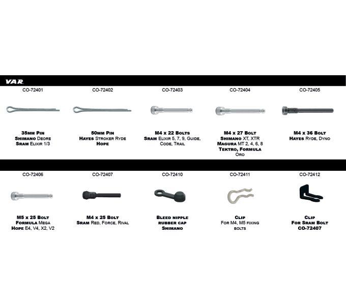 VAR VAR Scheibenbremssicherungs-Set Bremsbelaghalterungen Sortierbox